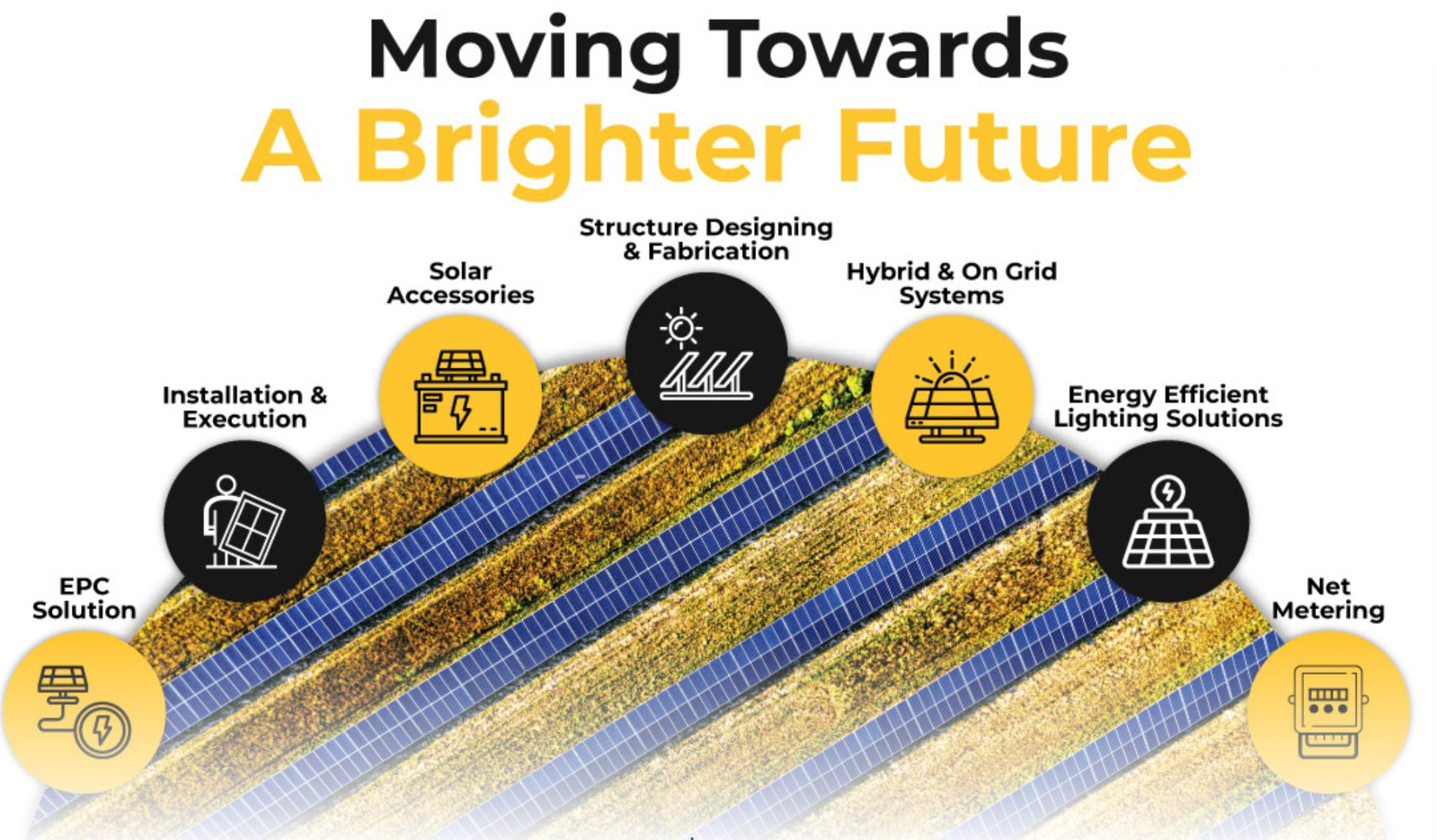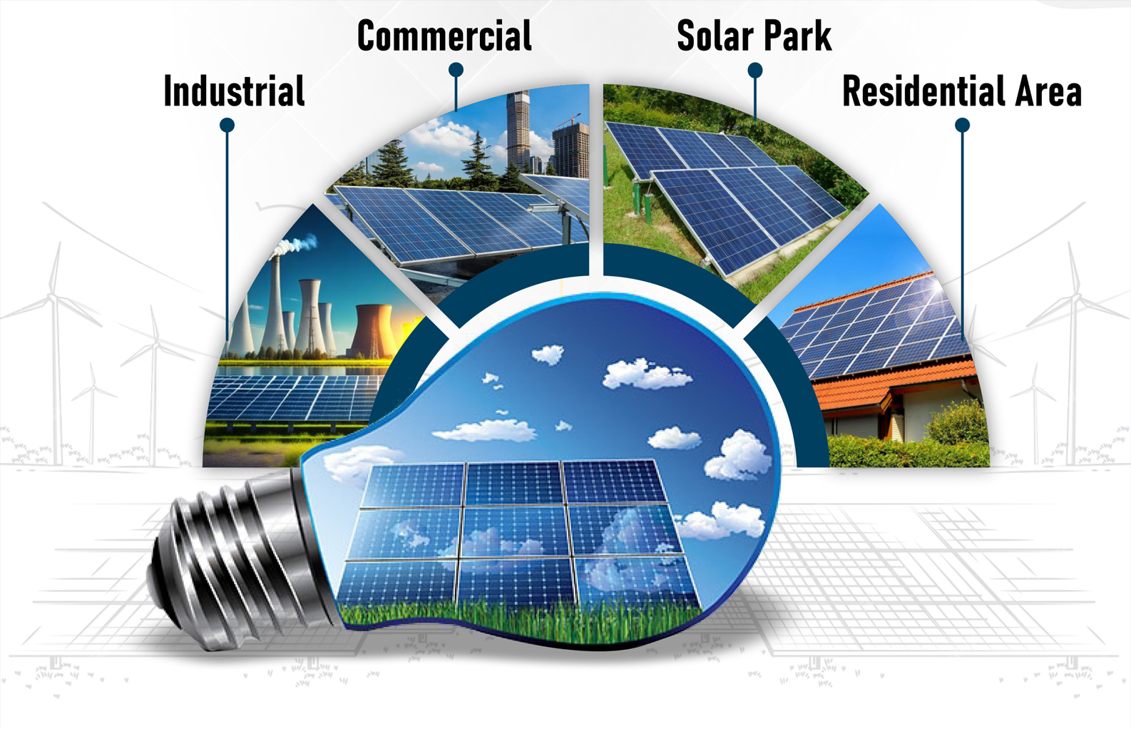 OUR SERVICESResidential (Urban Consumers and Rural Consumers) OFF Grid & ON Grid. Industrial Solar Projects like Multi Vertical Industrial clients such as Textile, Paper, Automobile, Brewing, Chemicals, Sugar etc. Commercial Solar Projects like Airports, Malls, Parking Shades Hotels, Hospitals, Institutes etc. Utility Scale Solar Projects / Solar Parks. Operations & Maintenance Services .